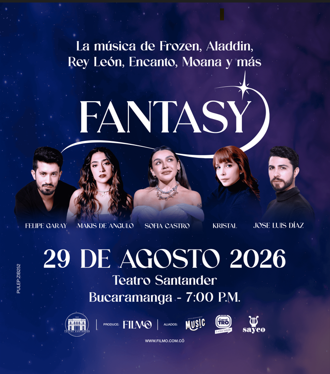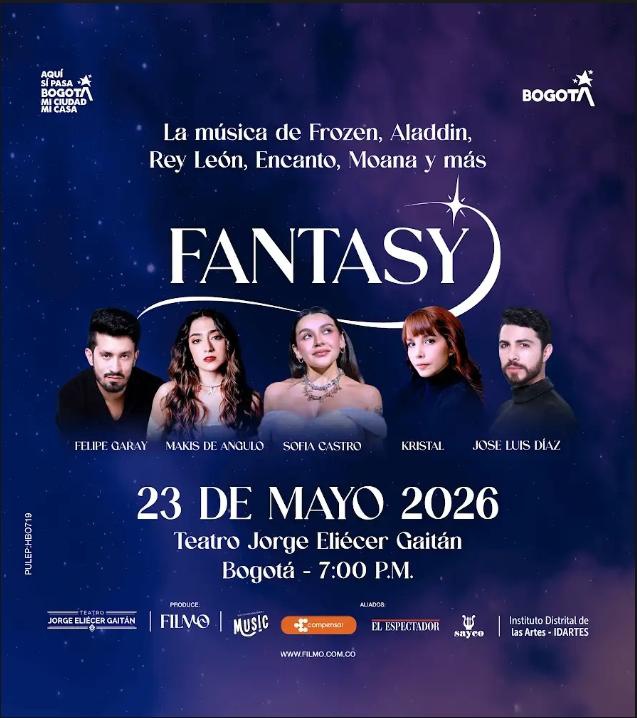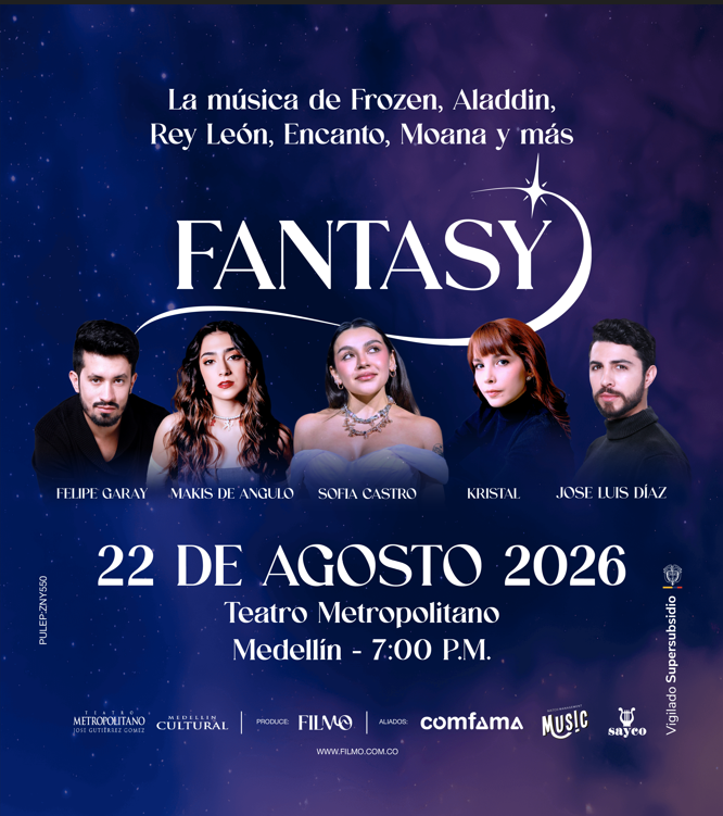 FILMO, una de las orquestas más innovadoras del formato sinfónico en vivo en Colombia, presenta FANTASY en Bogotá: un espectáculo en gran formato construido sobre la música de Frozen, Encanto, El Rey León y Coco, y más. FANTASY redefine lo que puede ser un concierto familiar: no solo entretenimiento, sino una experiencia sonora, visual y emocional en vivo, con invitados especiales, creada para que el público vuelva a sentir la fantasía en el pecho.