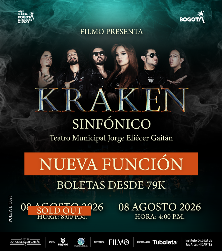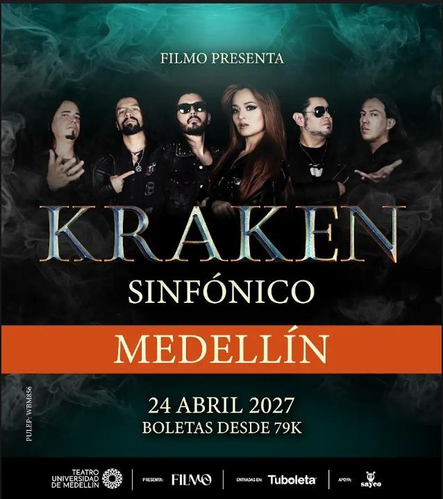 Después de hacer sold out en su primera función en Bogotá, Kraken Sinfónico llega por primera vez a Medellín con una puesta en escena sin precedentes que lleva los himnos de Kraken a una dimensión monumental. Más que un concierto, esta propuesta redefine la experiencia del rock en vivo en Colombia a través de un formato sinfónico de alto impacto, concebido para celebrar el legado de una banda histórica con toda su fuerza, grandeza y poder escénico.